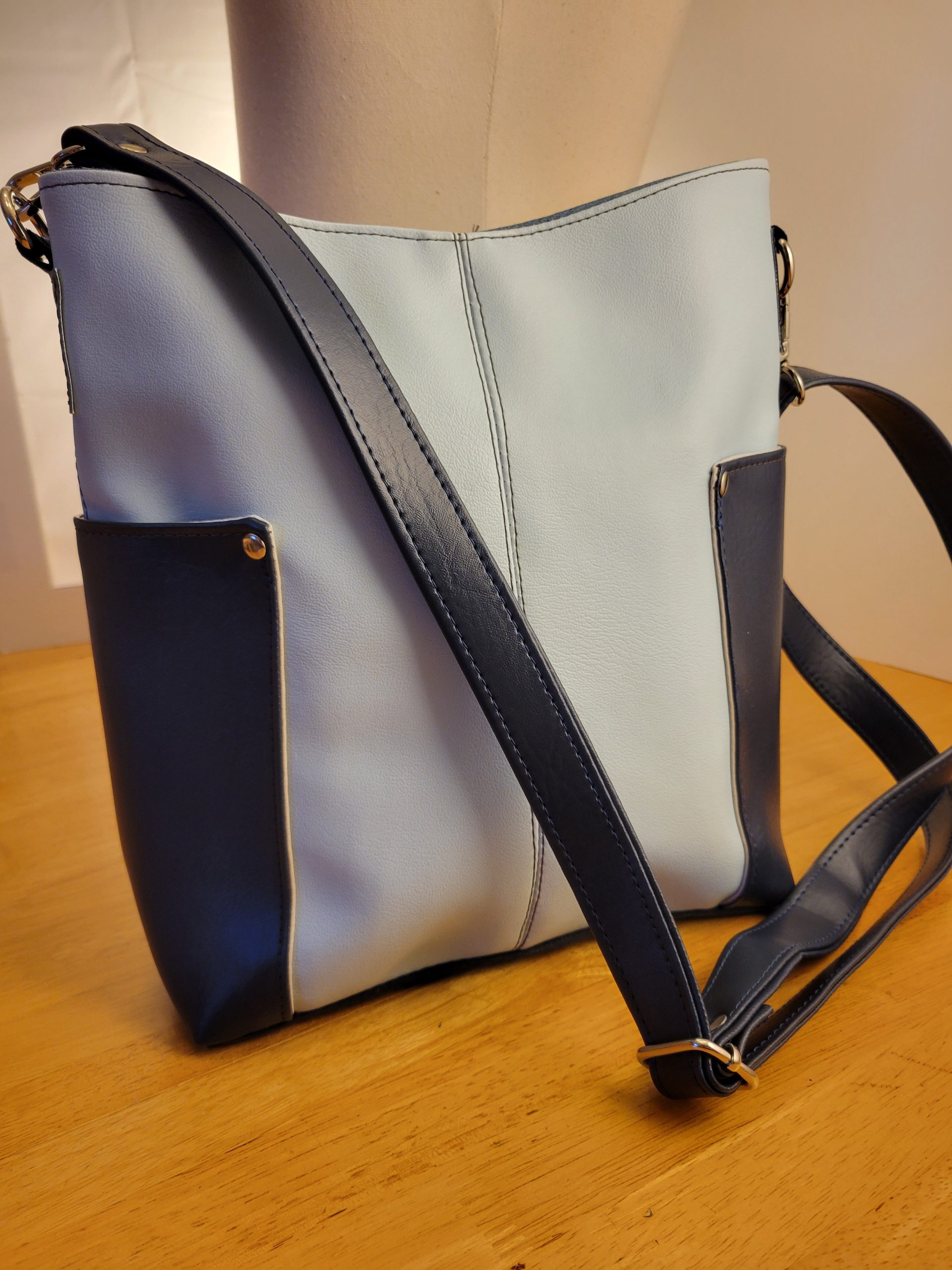 The Compass bag is 9½” Wide, 11” High, 4” deep and features two riveted exterior slip pockets, interior slip pocket and zippered pocket. It has a magnetic closure and flat base. Included adjustable crossbody strap. The exterior is made from upholstery fabric combined with marine vinyl and waxed canvas base for durability. The interior is made of waterproof canvas that can stand up to wear and tear.